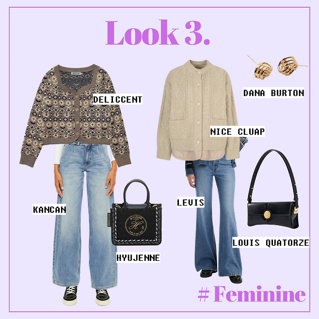 패턴이 돋보이는 가디건에 블루진이 캐주얼하면서도 너무 예쁘지?ㅎㅎ