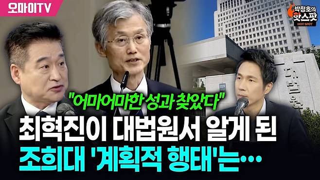 | ▲ 최혁진 무소속 의원은 17일 오마이TV <박정호의 핫스팟>에 출연해 '대선 개입 의혹'을 받고 있는 대법원에 대한 현장 국정감사를 더 해야 한다고 밝혔다. |