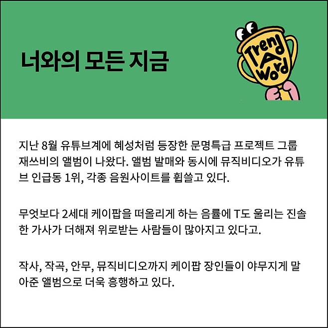 앨범까지 발매하게 된 재쓰비의 성장 일기가 궁금하다면