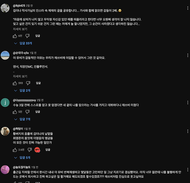 위로와 공감을 주는 가사이다 보니,
