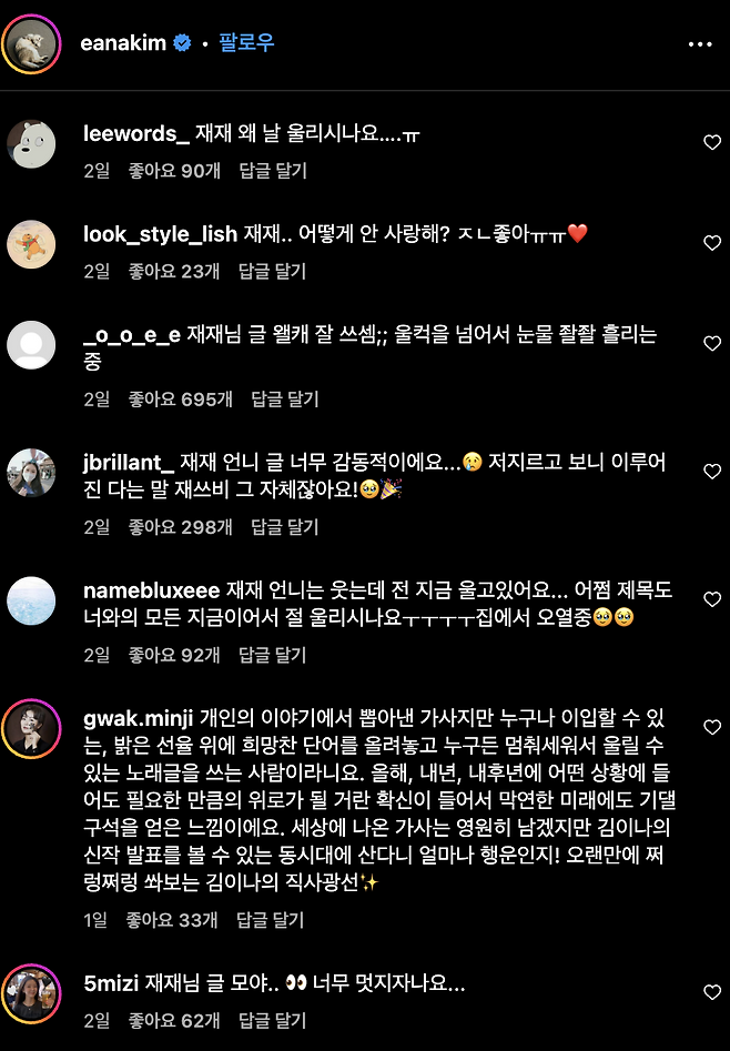 감성적이고 위로를 전하는 진솔한 가사에