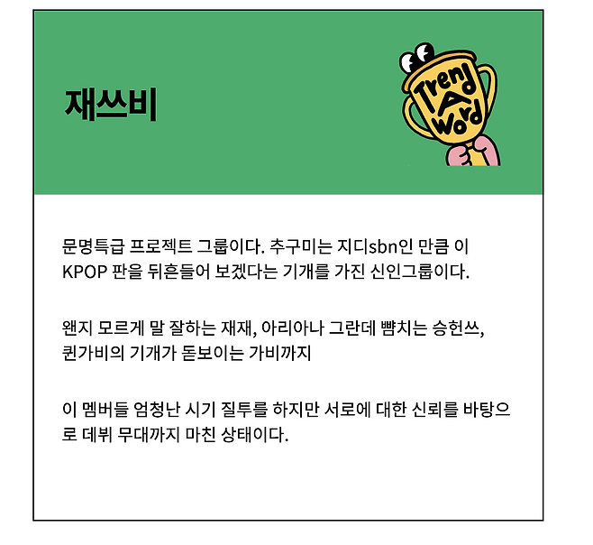 재재, 승헌, 가비로 이루어진 프로젝트 그룹 재쓰비의