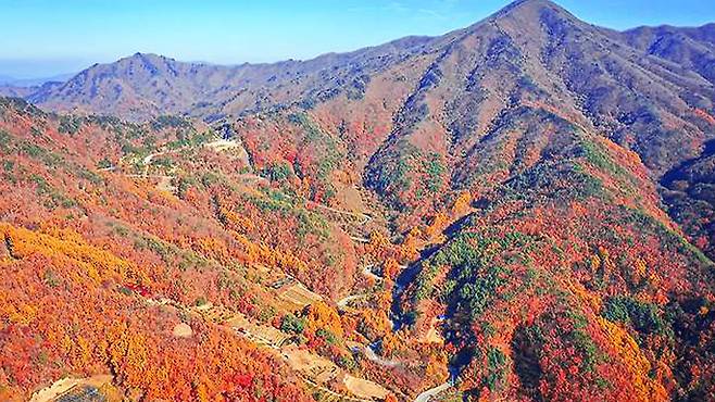 마치 한 폭의 동양화처럼, 산굽이를 따라 붉고 노란 단풍이 너울지며 흘러내린다. 충청북도 영동군, 해발 840m의 고갯길 위에 숨겨진 절경이 있다. 아는 사람만 안다는 드라이브 명소 ‘도마령’이다.