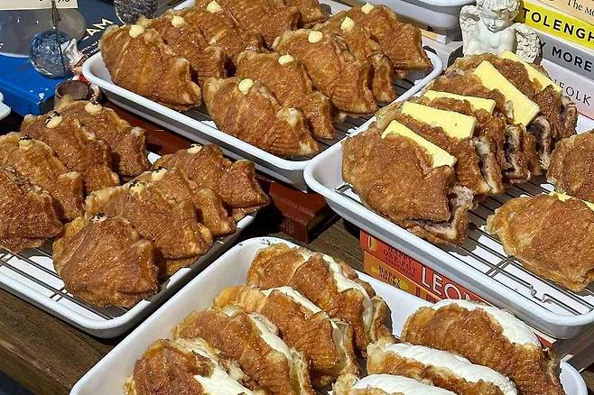 크루아상 생지로 구워 더욱 바삭한 붕어빵 논현동 ‘레자미오네뜨’. 일명 ‘명품 붕어빵’이라고 불리우는 ‘크붕이’들이 시그니처 메뉴로 바닐라, 밀키, 초코 등 달콤한 속 재료를 가득 채운 크붕이들부터 딸기, 바나나 푸딩 등의 과일을 이용한 속 재료를 가득 채운 크붕이까지 다양한 종류의 붕어빵을 만나볼 수 있다. 붕어빵 말고도 다양한 베이커리가 준비되어 있지만 매장에서 먹을 순 없고 포장만 가능하다니 참고하시길.