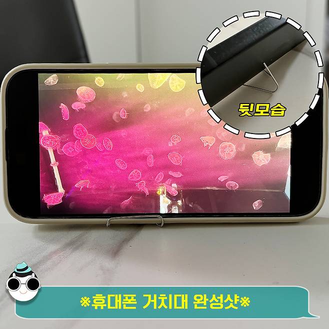 클립이 보기에는 연약해(?) 보일지 몰라도 생각보다 훠얼씬 튼튼해서 핸드폰을 올려둔 상태에서도 요리조리 돌려도 넘어지지 않아요.