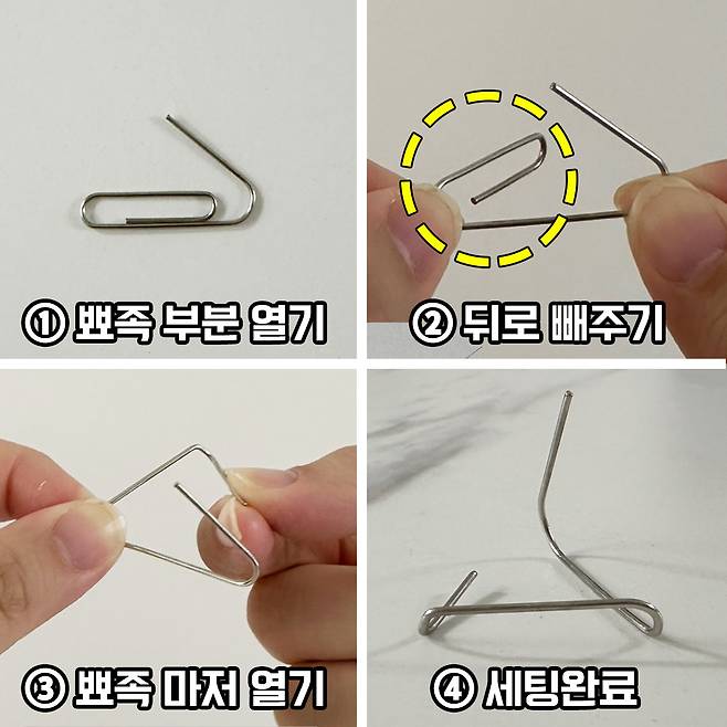 클립을 삼각형 모양으로 차례차례 휘어주면 준비 끝.
