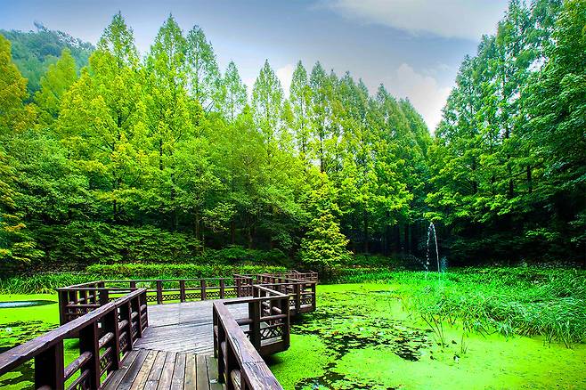 ‘도시 한가운데 이런 울창한 숲이 있다고?’라는 생각이 들 만큼 짙은 초록으로 둘러싸인 이곳은, 국내 유일의 메타세쿼이아 숲이 조성된 자연휴양림이다.
