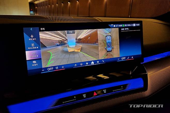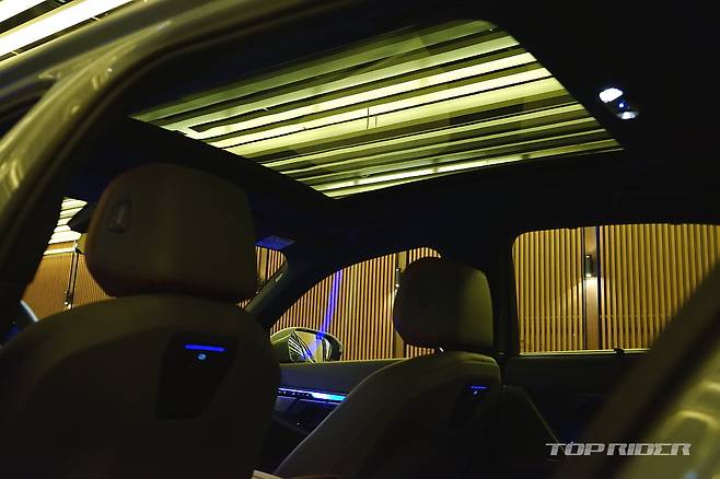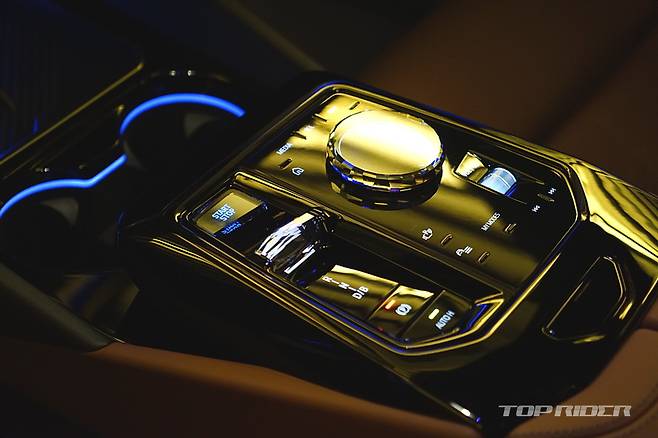 스와로브스키 브랜드와 콜라보한 크리스털 소재의 iDrive 컨트롤러나 커다란 메탈 디테일 스피커, 그리고 가정용 오디오가 연상되는 히든형 패브릭 스피커, 5단계 개별 송풍량 조절이 가능한 에어벤트, 선명한 디스플레이, 그리고 과도기를 지나온 직관적인 UI는 매력적이다.