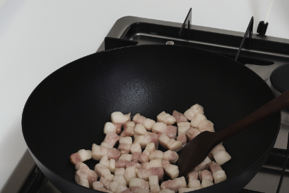 재료 투입 순서 지키기:돼지고기 → 양파 → 간장/설탕 → 나머지 채소 → 춘장