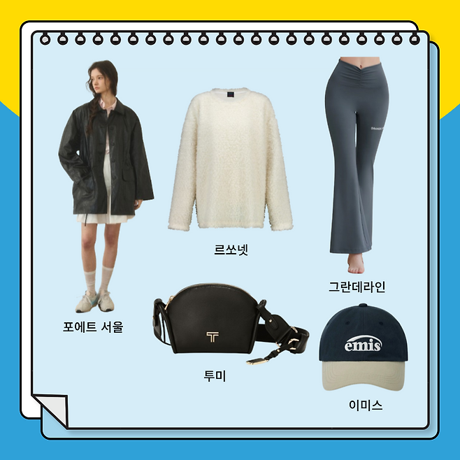 포인트로는 투미 미니 크로스백에 이미스 모자로 마무리!