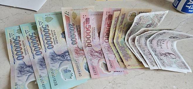 화폐단위가 큼. 저금액에서 나누기 20을하면 한국돈값임. 50만동이면 한국돈 2만5천원