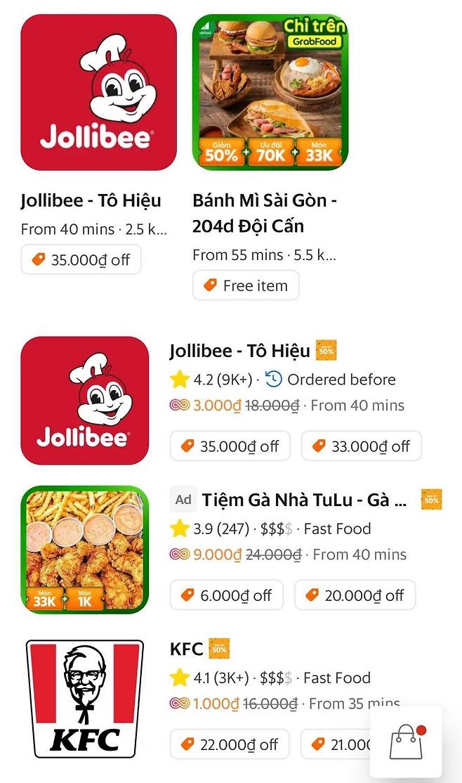 그랩 오토바이도 있는데 사람 태우는것부터해서 음식배달까지 다함. 배달의 민족이 베트남에 진출했다가 개발리고 철수했는데 그원인이 저 그랩 오토바이임.