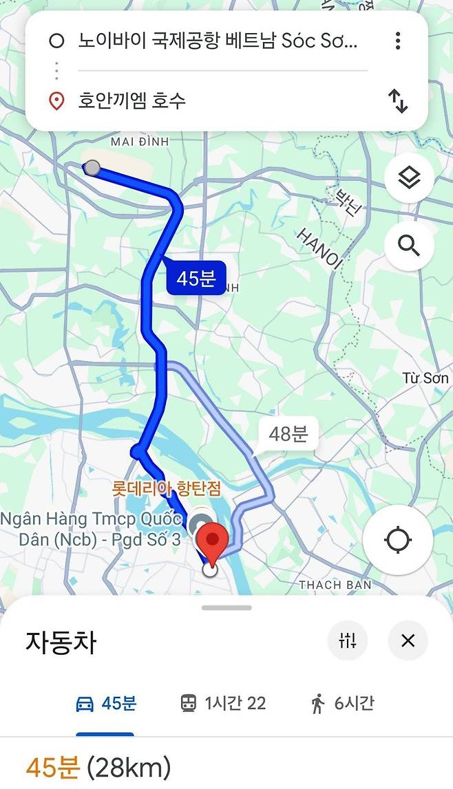 공항에서 인기관광지인 호안끼엠호수까지 차로 40여분 걸리는데 그랩으로 13000~15000원이면 감