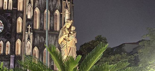 프랑스 식민지시절 프랑스가 이자리에 있던 천년된 탑을 폭파시켜버리고 만든 노트르담 대성당을 모티브로 만든 성당.