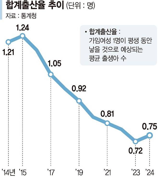 올해는 연간 출산율이 0.8명대에 진입할 가능성도 제기된다.