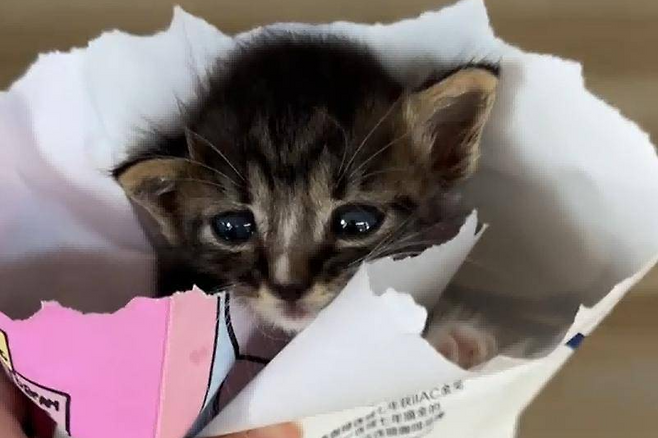 얼마 전, 회사원이 잠시 사무실을 비우고 음료수를 사러 갔다가 화단에서 아기 고양이를 발견했습니다.
