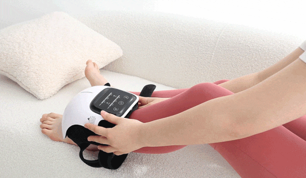 터치패널로 조작합니다. 진동, 온열 단계나 레이저, 적외선 모드를 직관적으로 작동할 수 있죠. 착용이 쉽습니다. 무릎에 밀착한 뒤 벨크로로 사이즈를 조절하면 됩니다.