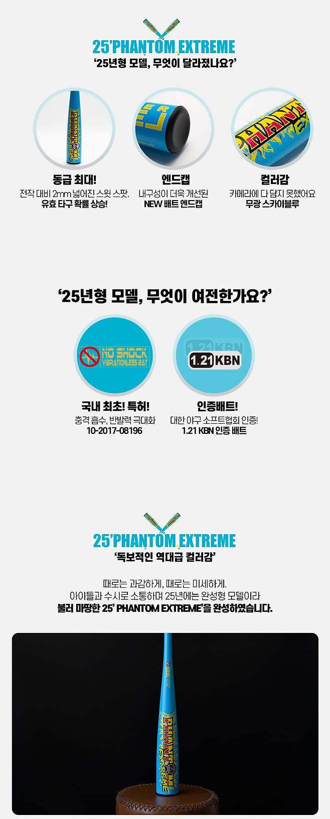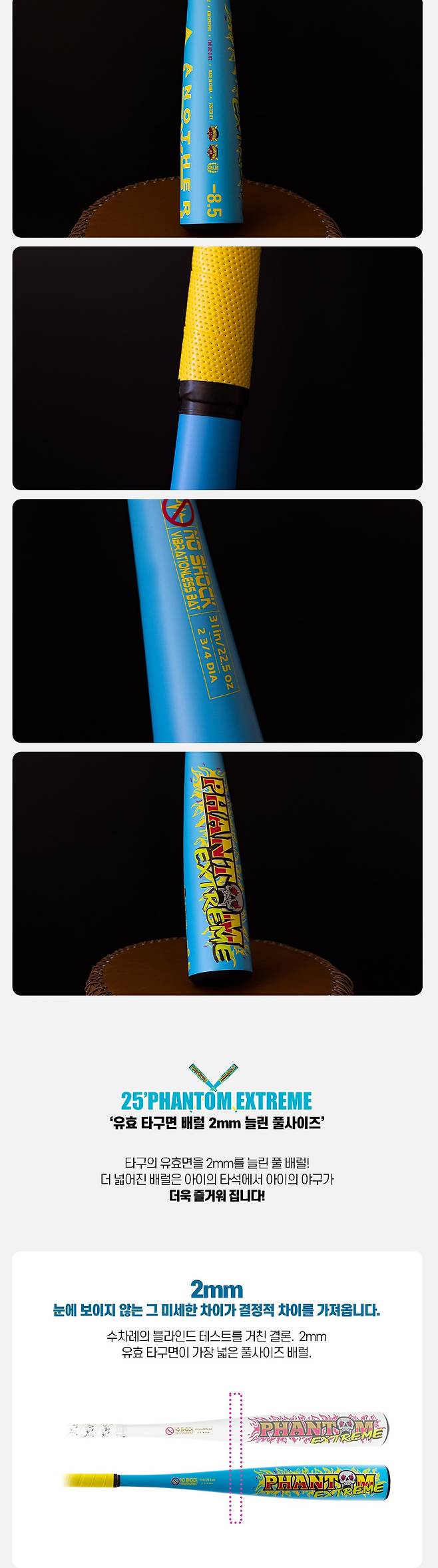 최대한 배럴의 길이를 늘려 유효 타구 확률을 높이고, 배트의 메인 디자인을 TAPER 부분까지 최대한 늘려