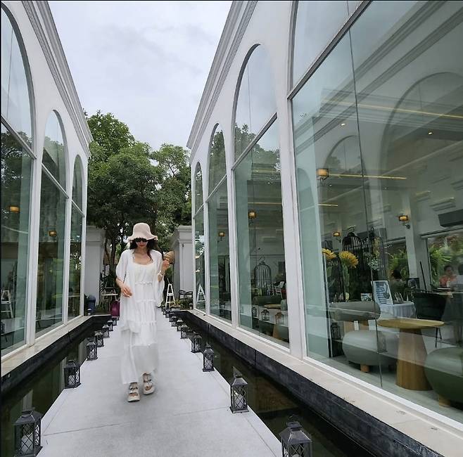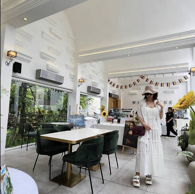 여기에 화이트 플랫폼 샌들과 체인백을 매치해 ‘신주아표 사모님룩’을 완성했고, 화이트 톤으로 통일한 실내외 배경까지 더해지며 마치 화보 같은 한 장면을 연출했습니다.