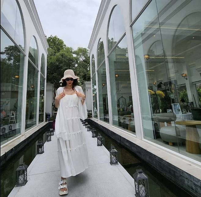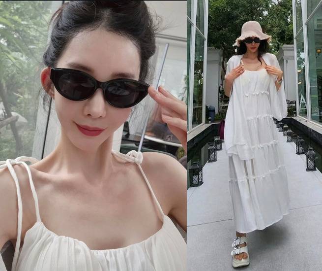 신주아가 순백의 원피스 스타일링으로 고급스러운 여름 무드를 완성했습니다.
