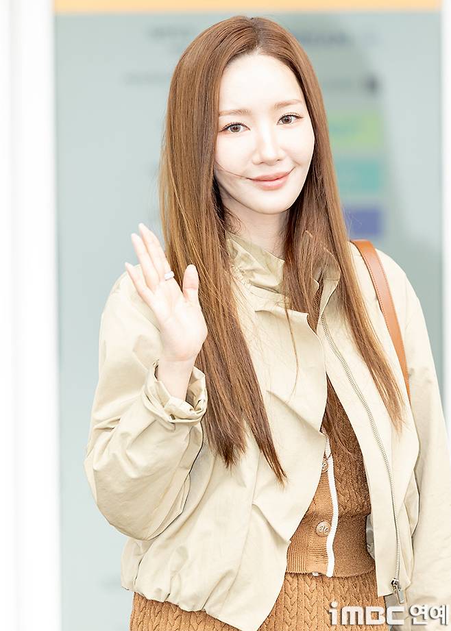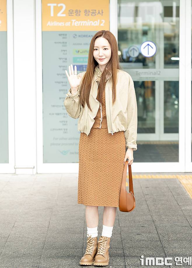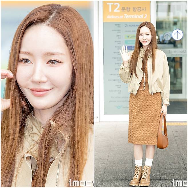 공항에서 포착된 사진 속 박민영은 여러 포즈를 취하며 인사를 건넸다.