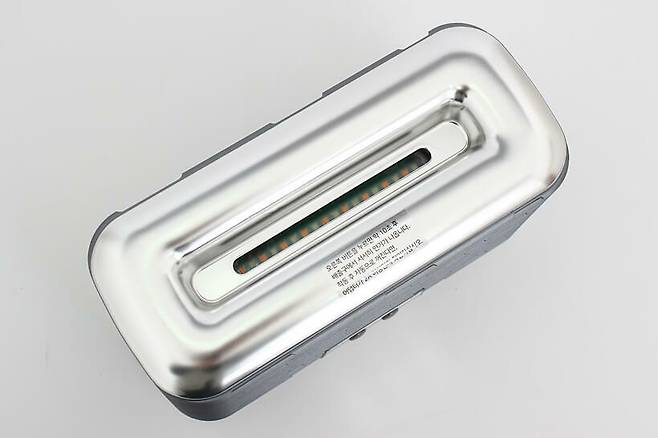 토스트의 식빵 투입구처럼 생긴 뒷면 홈에는 실제로 길다란 구멍이 뚫려있고, 그 안으로 한 줄로 늘어선 LED가 보인다.