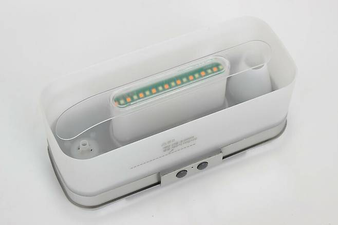 수조에 물을 채운 후 케이스를 닫고 전원 케이블을 연결한 뒤 왼쪽 조명 선택 버튼을 누르면 윗부분 LED가 주황색으로 켜진다. 조명 선택 버튼을 한 번 더 누르면 조명 색상이 푸른색으로 바뀌며 버튼을 길게 누르면 조명을 끌 수도 있다.