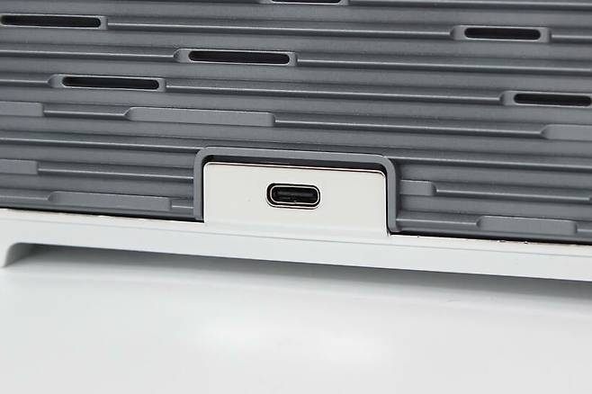 본체 앞면에도 가로로 얇은 홈이 다수 나 있다. 단순히 디자인적 요소인 것으로 보이는 이 홈들은 기능적인 요소도 일부 있으니, 뒤에서 확인해보도록 하자.
