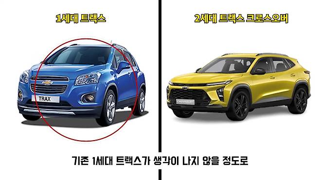 그리고 측면부 또한 기존 1세대 트랙스에 비해서 날렵해진 쿠페형 스타일로 바뀌면서 전고는 낮아졌지만 전장과 휠 베이스가 길어졌기 때문에 굉장히 와이드 한 느낌을 주고 있는 것 같아요.