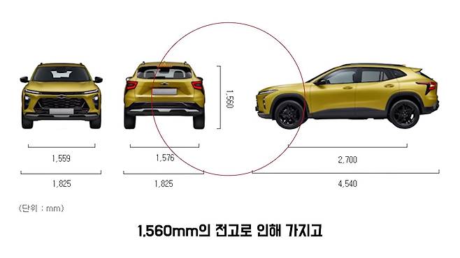 실제로 트랙스 크로스오버가 동급 경쟁차 대비해서 전고가 1,560mm로 굉장히 낮아졌기 때문에 승용차와 비슷한 느낌의 주행 안정성을 동시에 가져갈 수 있는 일명 'CUV'의 장점을 얻어갈 수 있다고 볼 수 있어요.