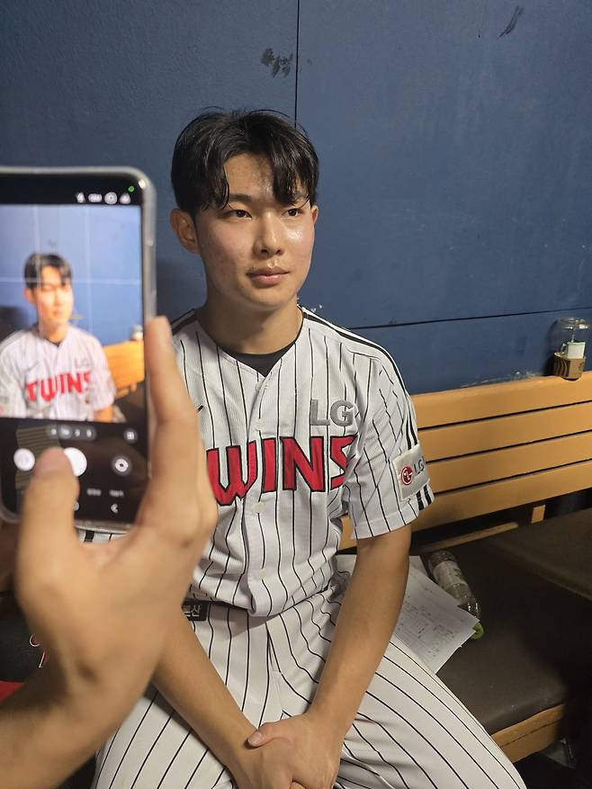 경기 뒤 더그아웃에서 만난 김영우는 필승조로서 첫 등판 소감에 대해 묻자 “경기 전에 감독님을 잠깐 뵀는데 ‘이제 계속 타이트한 상황에 쓸 생각이다. 점수 차나 이런 것에 신경쓰지 말고 지금까지 하던대로 그냥 해라’라고 말씀해주셔서 그 말을 새겨듣고 그냥 제 공을 던지는 데 집중했어요”라고 담담하게 말했다.