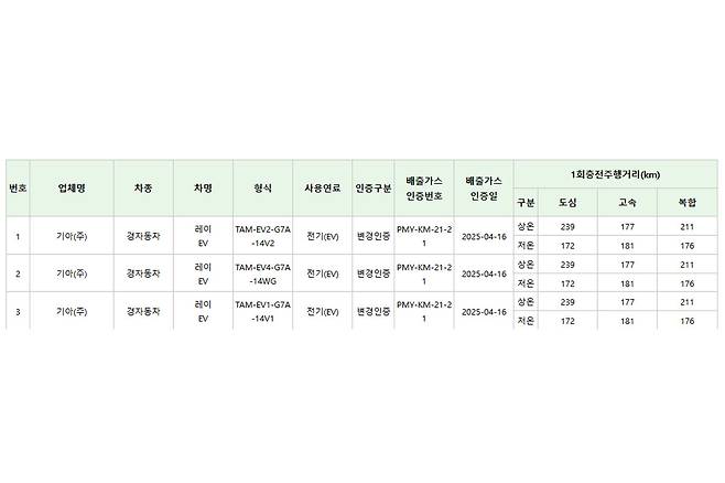 기존 레이 EV는 1회 충전 시 복합 기준으로 205km 주행할 수 있다고 인증되었었다. 이는 주로 도심 주행과 짧은 거리 통근에 특화된 모델이라는 점에서 충분한 수치로 여겨졌지만, 이용자들의 실사용 경험에서는 “에어컨·히터를 켜면 체감 주행거리가 150km대로 떨어진다”라는 지적이 많았다. 이에 기아는 주행거리 개선을 위한 업데이트를 단행했고, 마침내 211km라는 새로운 수치를 인증받았다.