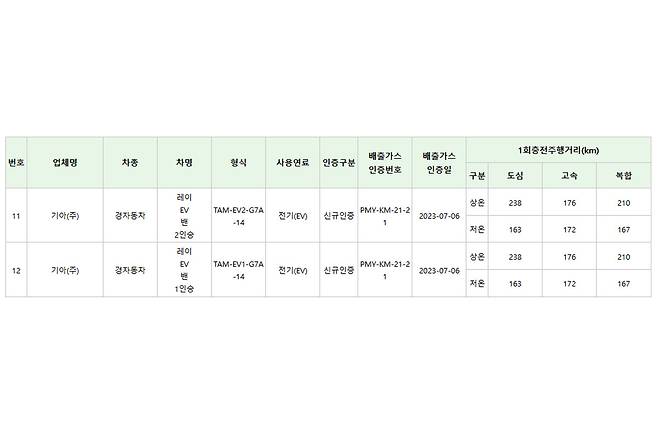 레이 EV는 기존 저온 주행거리 인증 수치인 167km보다 9km 향상된 176km로 바뀐 결과를 보이며, 겨울철에도 보다 안정적인 주행이 가능하다는 점을 입증했다. 이는 히트펌프 시스템의 적용 범위 확대, 차량 전체적인 에너지 효율 최적화를 통해 얻어진 결과로 예측된다. 계절에 따른 도심형 전기차의 운용 측면에서 긍정적인 역할을 할 것으로 기대된다.