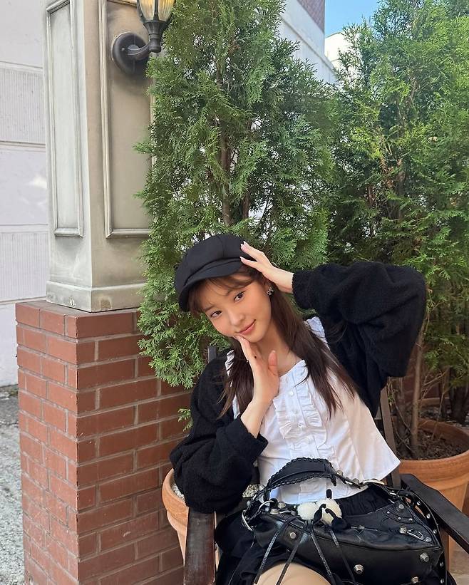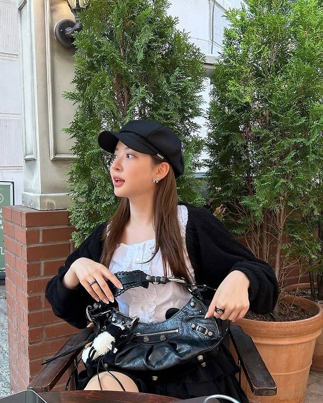 그녀는 화이트 셔링 디테일의 블라우스에 블랙 컬러의 니트 가디건을 레이어드해 단정하면서도 청량한 분위기를 연출했다. 여기에 블랙 볼캡으로 스포티한 포인트를 더하며 전체적으로 세련되고 트렌디한 인상을 준다. 소가죽 소재로 보이는 블랙 호보백은 실버 스터드 장식과 독특한 쉐입으로 락시크한 무드를 강조했고, 하단에는 귀여운 키링으로 포인트를 주며 스타일에 위트를 더했다.