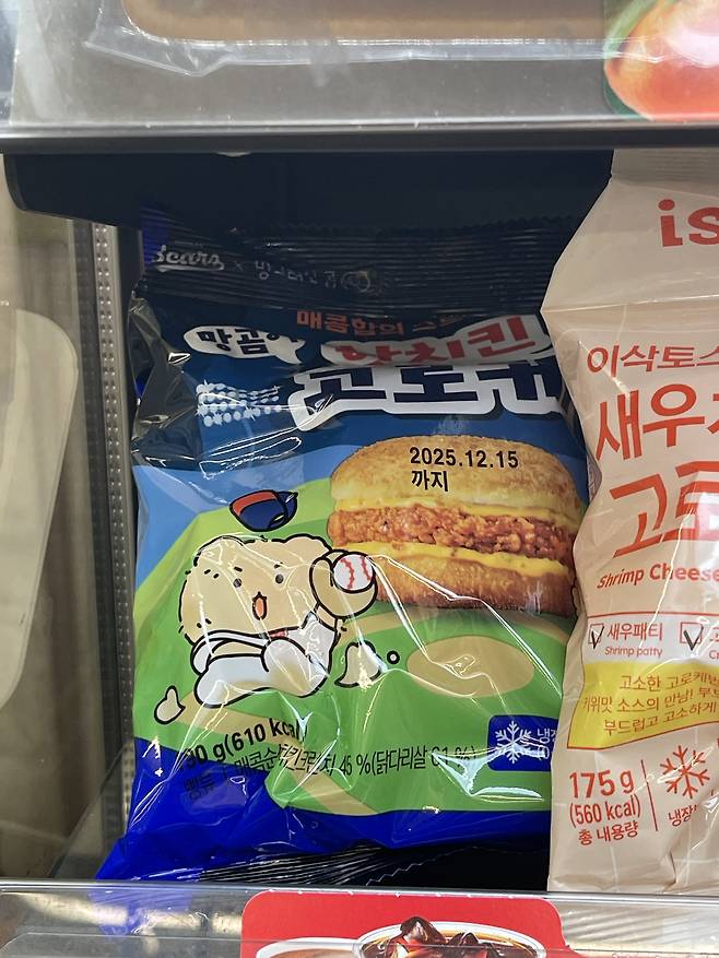 CU 신상 라인업 중 하나로, 망곰베어스 콜라보 메뉴에 포함된 핫치킨 패티가 가득 들어간 고로케예요.