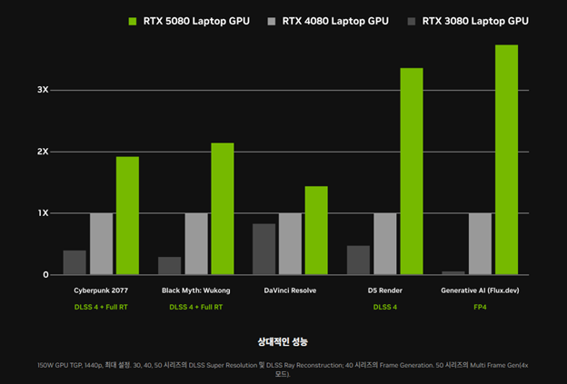 RTX 50 시리즈 노트북은 이전 세대인 RTX 40 시리즈 노트북에 비해 최대 3배 이상 향상된 AI 연산 성능과, 최대 2배 이상 향상된 게임 성능을 지녔다. 전력 효율도 향상돼 더 작고 더 가벼운 게이밍 노트북들이 대거 등장한다.