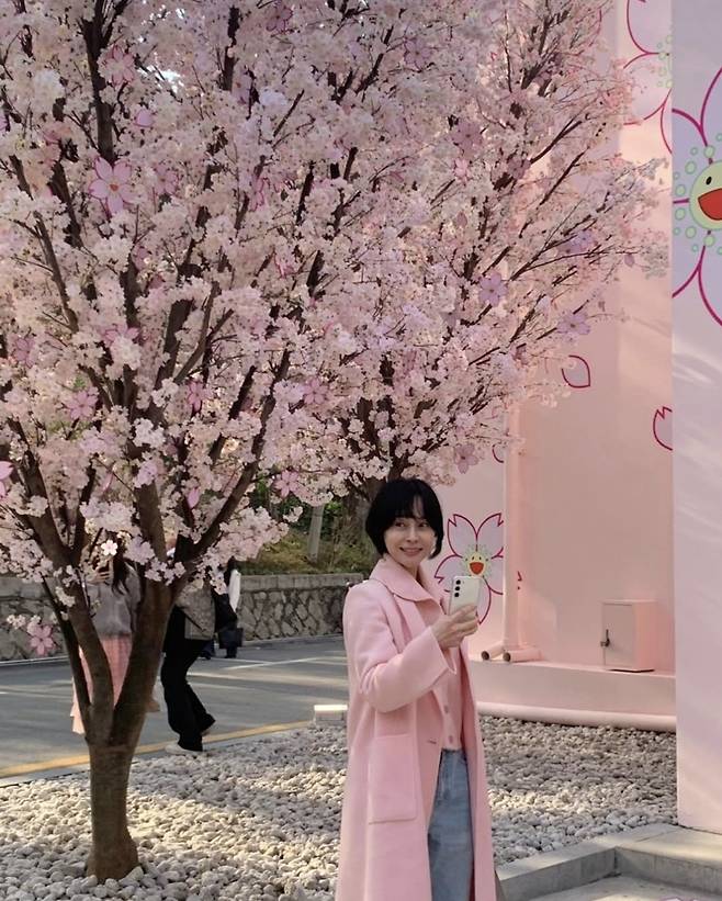 배우 우희진이 11일 인스타그램에 "지난주 도산공원 단골 맛집 카츠바이콘반 줄 서고 있는데 옆집이 예쁘게 꽃단장하였기에 찰칵 우연히 드레스코드 착 붙 😃🩷우리 동네 명품 벚꽃 자연의 선물도 찰칵🌸모두 행복한 봄 누리세요"라는 글과 함께 여러 장의 사진을 게재했습니다.