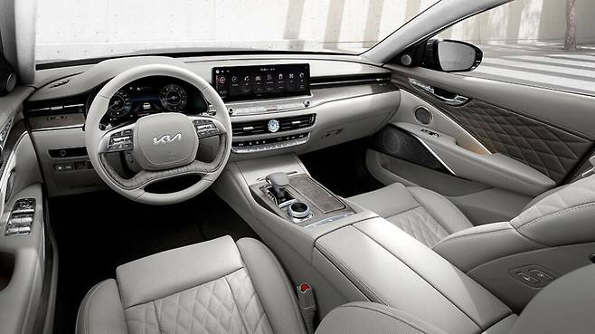 외관 디자인은 기존 모델의 품위 있는 언어를 계승하며 세련미를 더하는 작은 개선들이 적용됐다. 기아의 시그니처 크레스트 그릴과 쿼드 LED 헤드라이트가 특징이며, 미드나이트 블루, 딥 코퍼 등 새로운 외장 컬러와 독자적인 디자인의 19인치 휠이 추가되어 차별성을 더했다. 실내는 나파 가죽 시트, 우드 그레인 트림, 파노라마 선루프 등을 갖춰 한국 세단 중에서도 고급스러운 마감을 자랑한다.