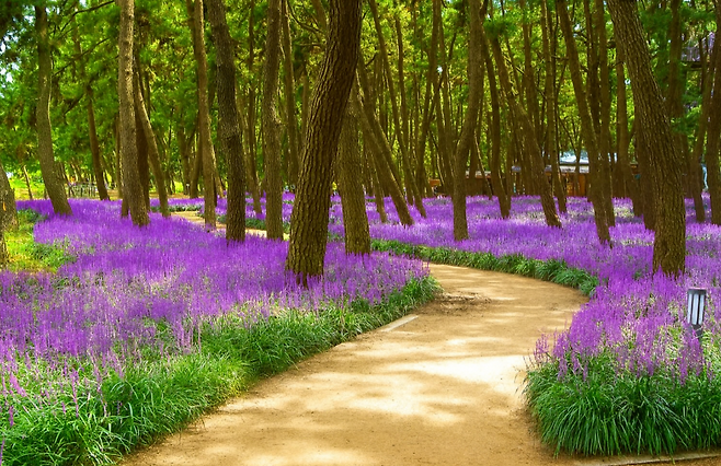 ▶ 보랏빛 맥문동 꽃과 울창한 해송숲이 어우러진 힐링 축제