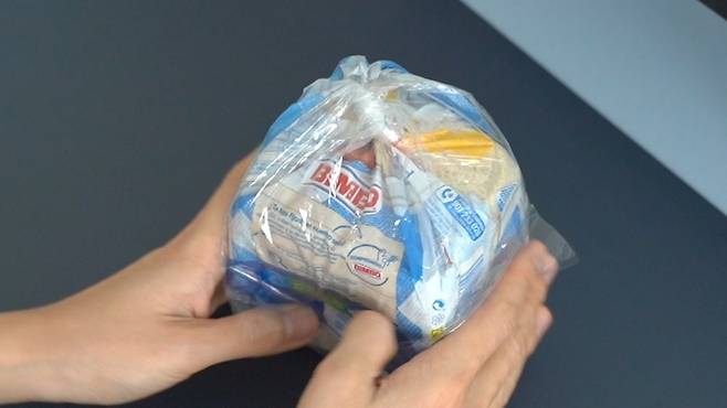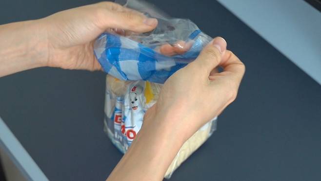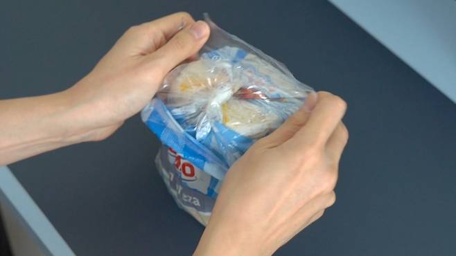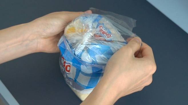 펼친 부분을 봉지에 감싸 놓기만 하면 끝입니다. 이렇게 하면 돌돌 말아 놓은 부분이 풀리지 않아 완벽하게 밀봉이 가능해요.