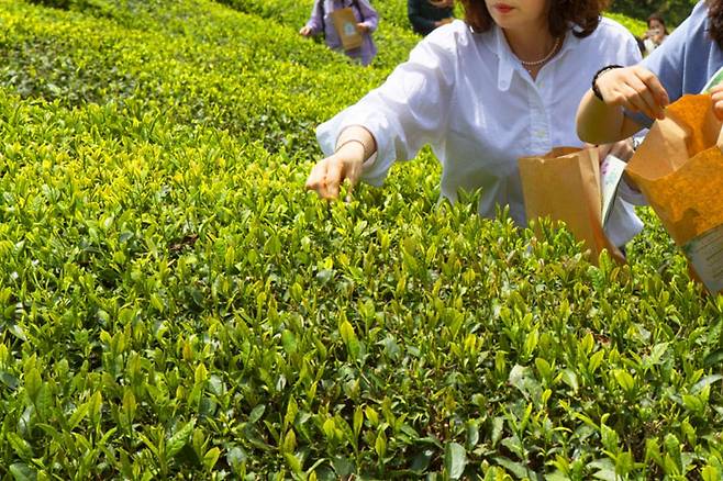 인공적인 조형물이 아닌, 자연 그대로의 차밭에서 연록의 찻잎 새순을 직접 손으로 따보는 경험은 아이부터 어른까지 누구에게나 신선한 설렘을 안겨줍니다. 이어지는 ‘차만들기’ 체험은 방금 딴 찻잎으로 차를 제조해 보는 시간입니다.