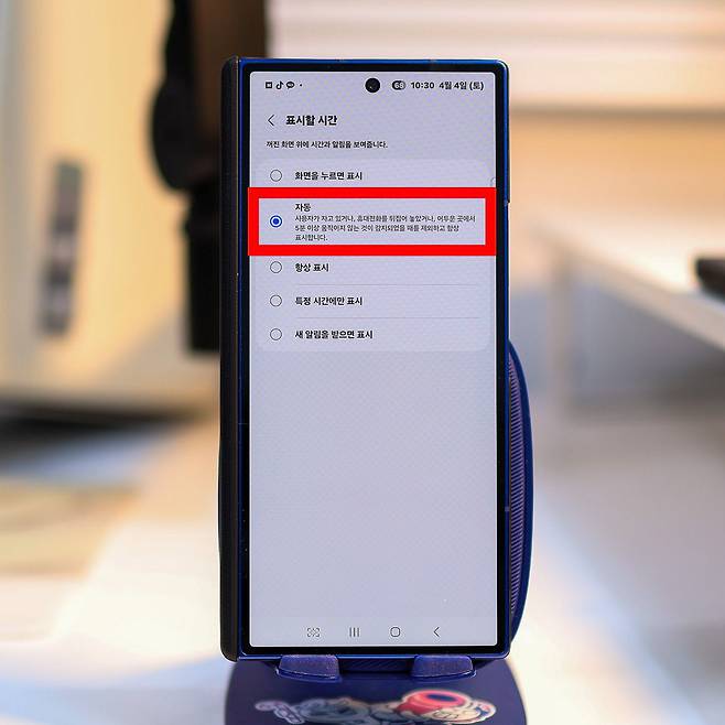 5단계. 여기서 [자동]을 선택해 주면 끝! 이제 갤럭시가 스스로 판단해서 똑똑하게 작동합니다.