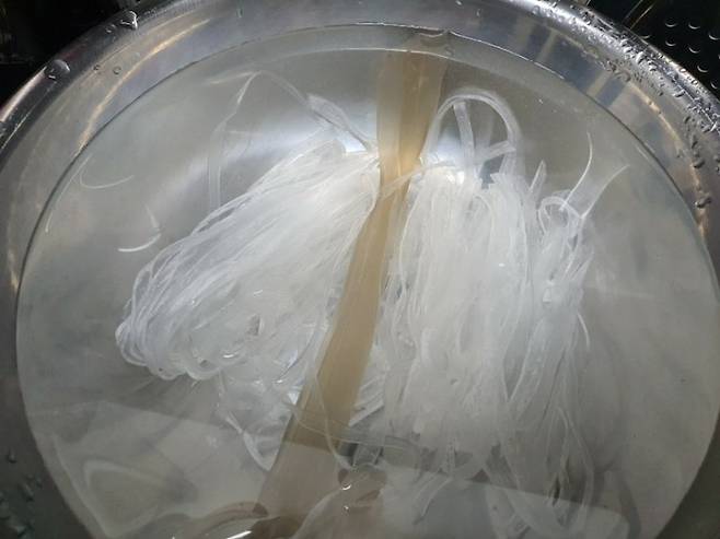 중국당면도 같이 넣어주면 더 좋은데 중국당면은 2시간은 불려줘야 익어요. 그래서 저는 간단하게 넓적당면으로 준비해서 불렸습니다!