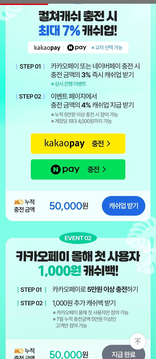 컬처랜드에서 카카오페이로 5만원 충전시 최대 8.25%할인(54,500원 충전됨)