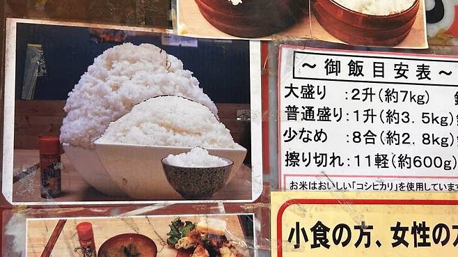 그러니까... '난 밥 적게 먹어야지~' 하고 소짜 시키면 2.8kg 밥이 나옵니다.