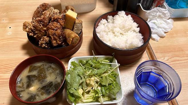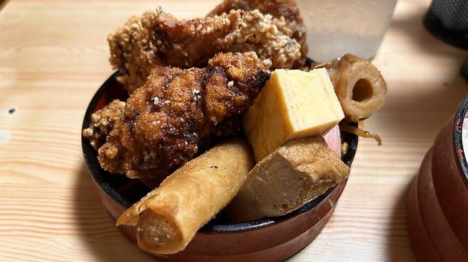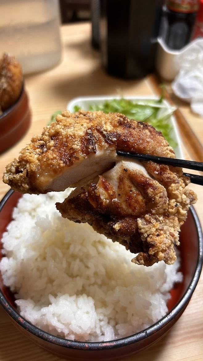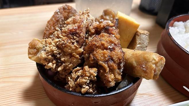 주인 할아버지가 "우리집 튀김은 카레맛이 나서 맛있다구" 라고 강조한 대왕 가라아게 3덩어리를 포함해