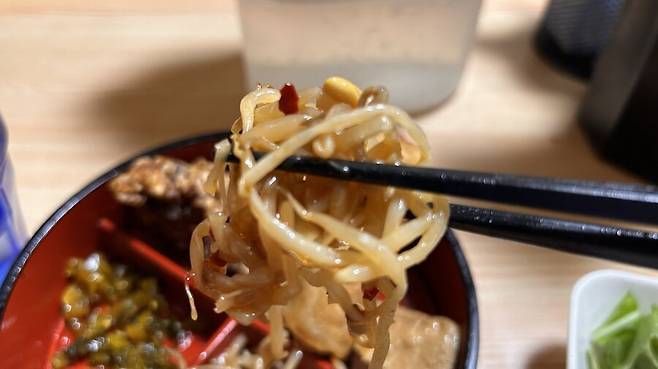 콩나물은 우리나라 무침과는 맛이 달랐지만, 밥 퍼먹기엔 좋았습니다.