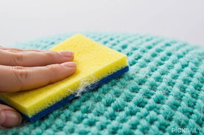 주방에서 사용하는 스펀지 수세미의 거친 면을 이용해 보풀을 제거할 수 있습니다. 니트를 평평한 곳에 두고 섬유 결 방향을 따라 가볍게 문질러 주면 보풀이 뭉치며 떨어집니다. 이때 힘을 너무 주면 섬유가 손상될 수 있으니, 살살 쓸어내듯 움직이는 것이 포인트입니다.