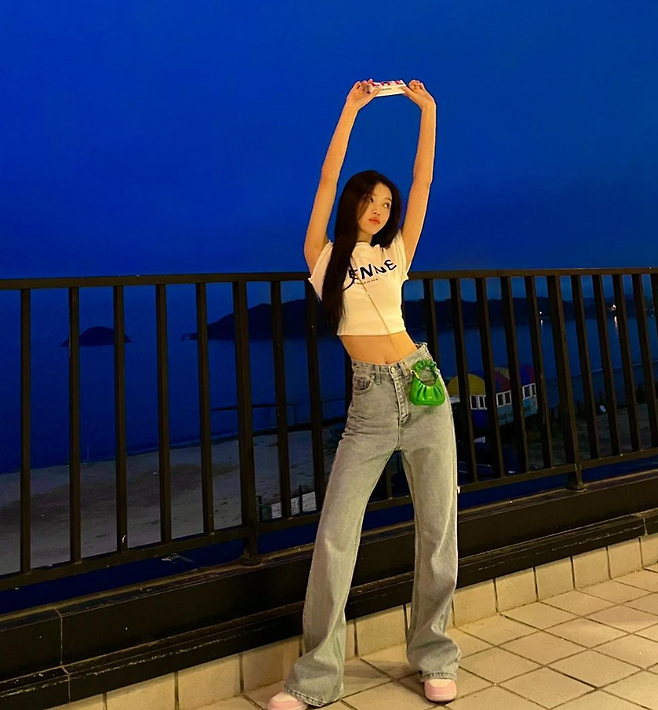 유아는 데님 패션이 잘 어울리는 연예인 중 한 명입니다.