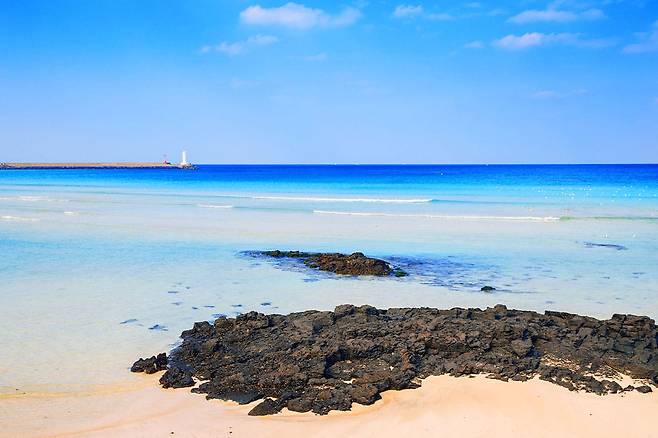 협재 해수욕장은 맑고 푸른 바다와 부드러운 백사장으로 유명합니다.